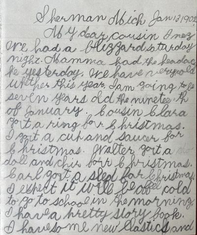 In the wobbly script of an eager child, she excitedly shared with her cousin, Lena, a description of the gifts she and other family members had received for Christmas. Simple items like a ring, a sled, a doll, a chair, and a cup and saucer that were undoubtedly treasures in a small rural town at the turn of the 20th century.